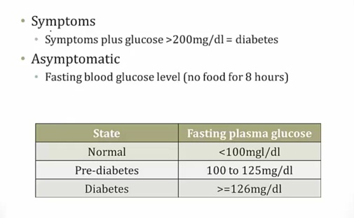 Asymptomatic as in no polyuria/polydipsia..