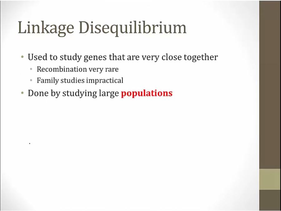 use linkage disequilibrium to study genes close together that can't study with family