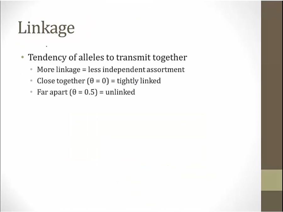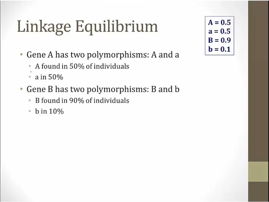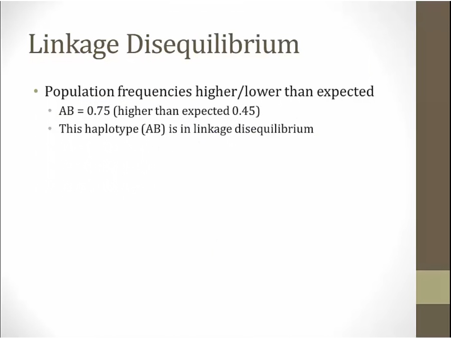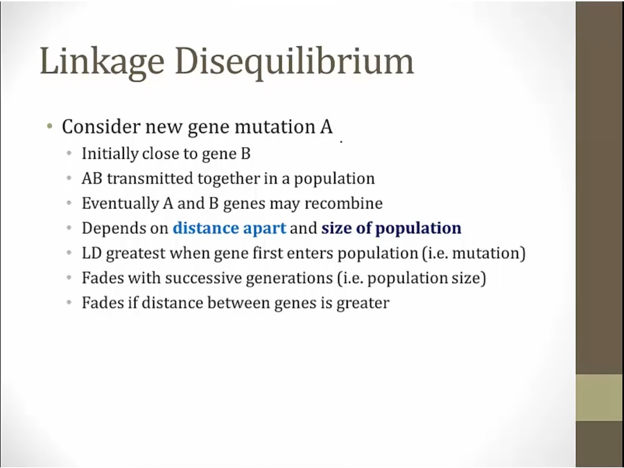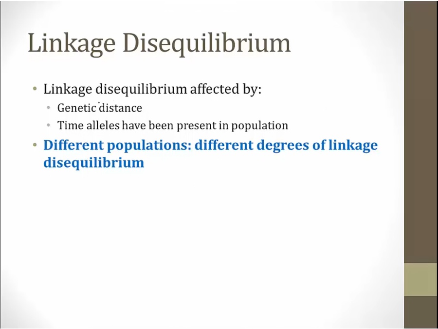 closer together = greater linkage disequilibrium