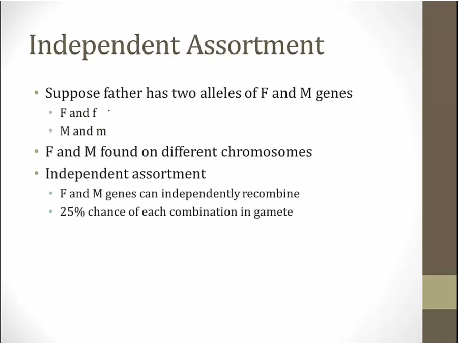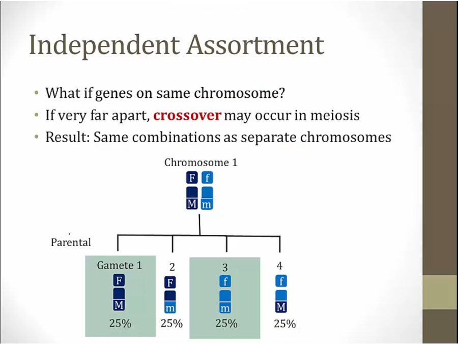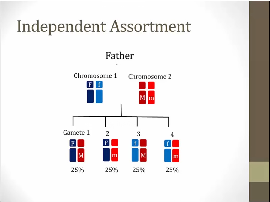 50% chance gametes will have parental version of genes