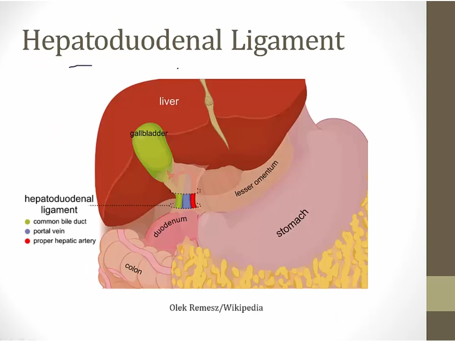 on top of duodenum