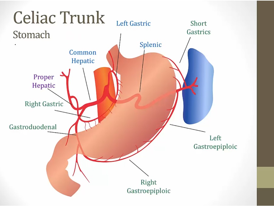 superior and inferior pancreaticoduodenal supply to stomach