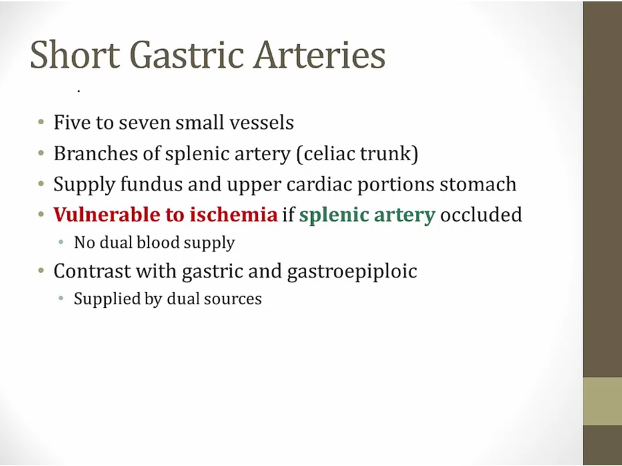 fundus/cardia of stomach: short gastric from splenic