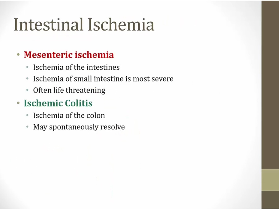 ischemia: not affect small intestine