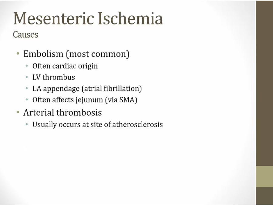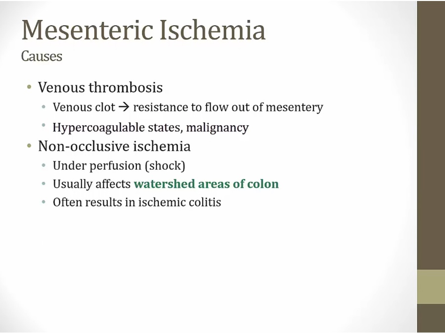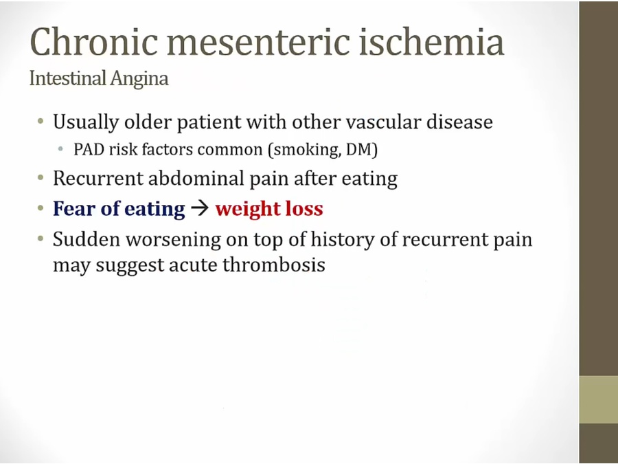 thrombosis: like a heart attack at intestines. More chronic