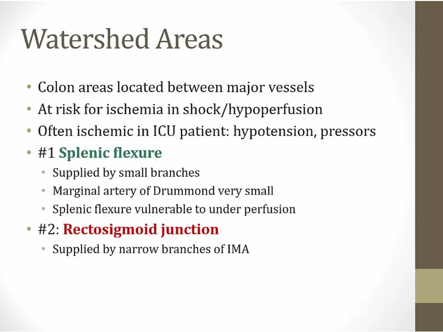 ischemia of colon less severe than small intestine