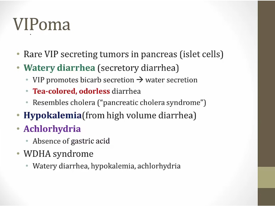 VIP tumors loss acid production in stomach
