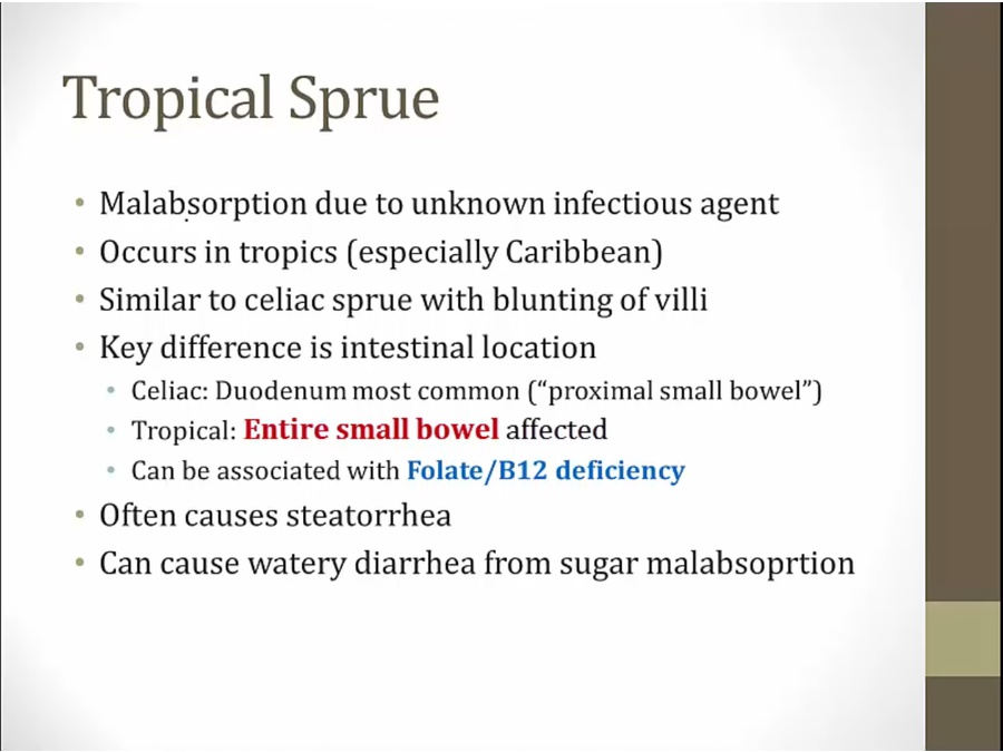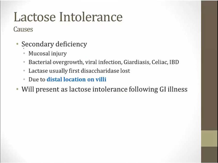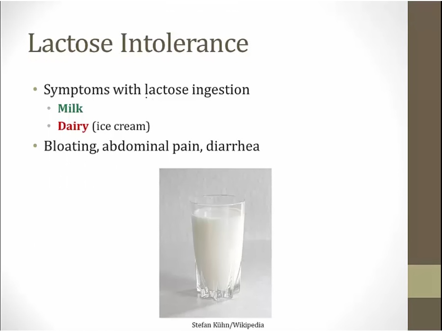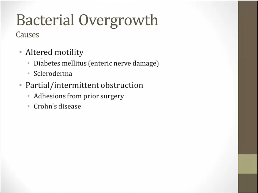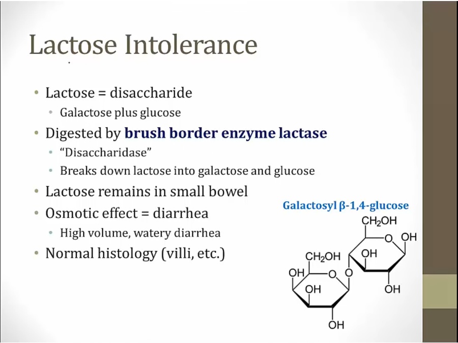 - lactulose: sugar molecule not absorbed, laxative, osmotic agent. Bacteria metabolized to hydrogen. Measure hydrogen