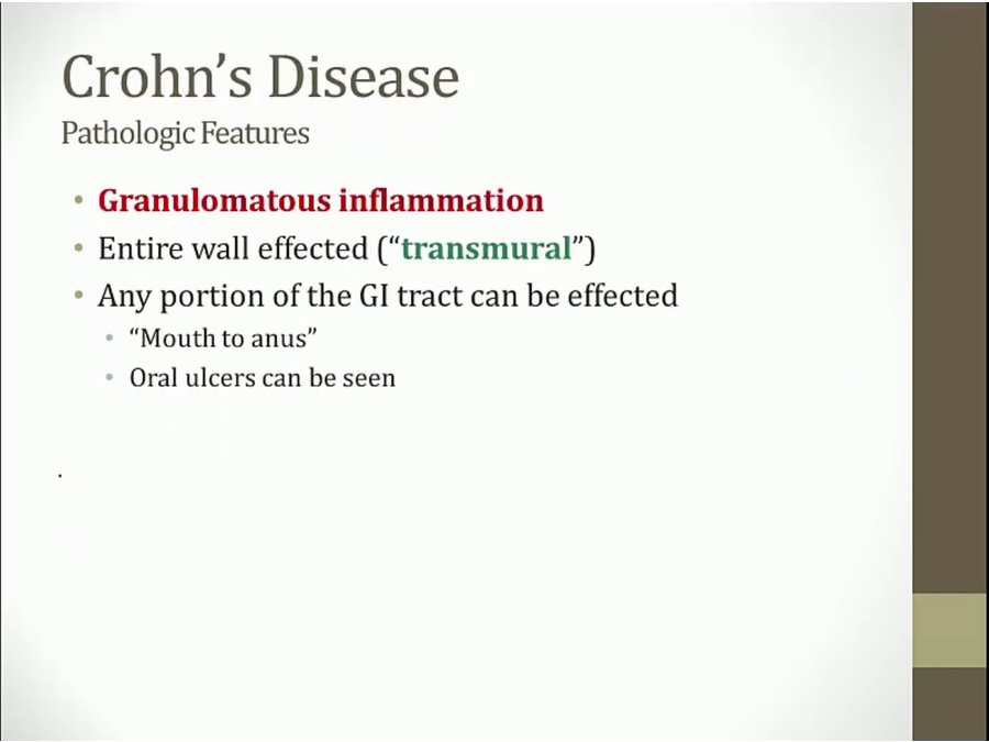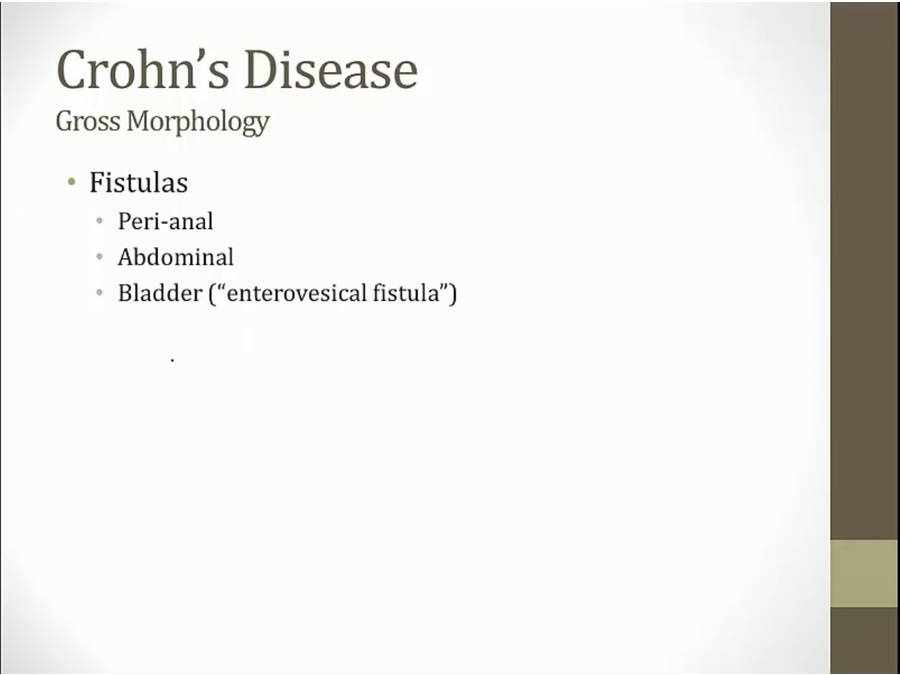transmural inflammation spread outside the wall and to other places (bladder, skin)
