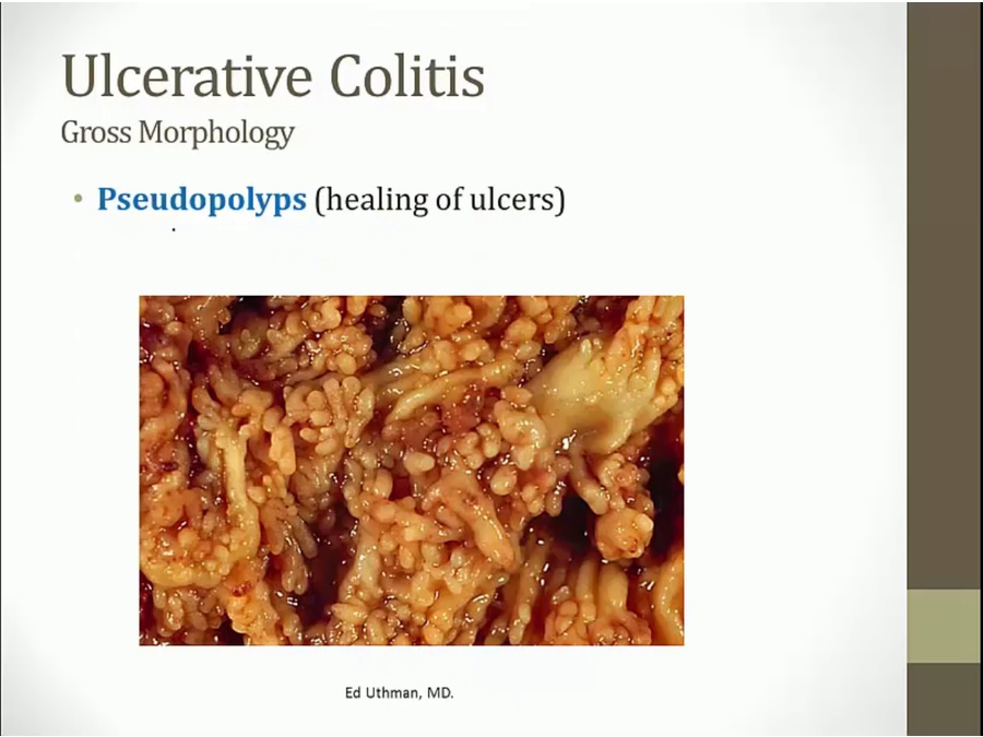 an ulcer healing, scar tissue raised up and looks like polyps