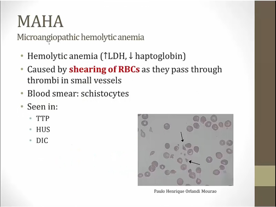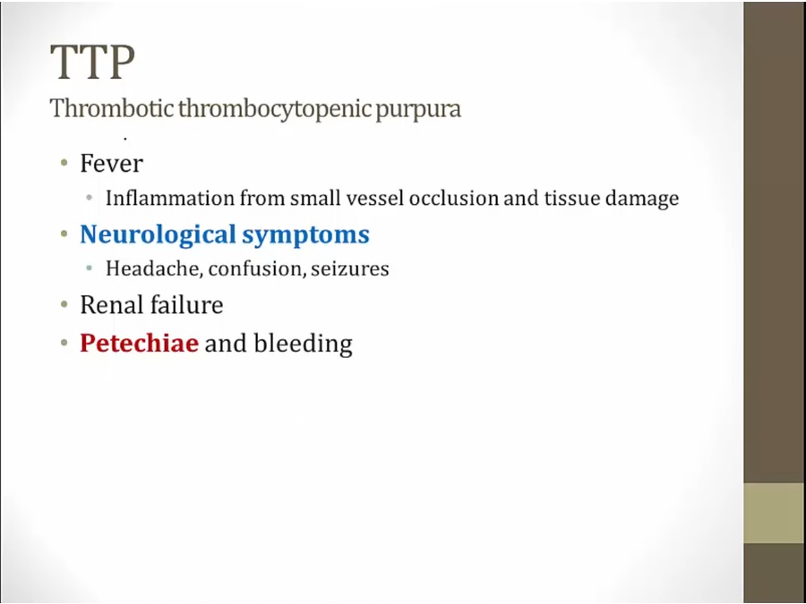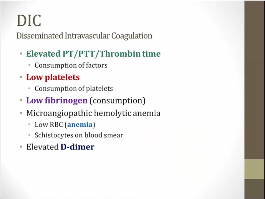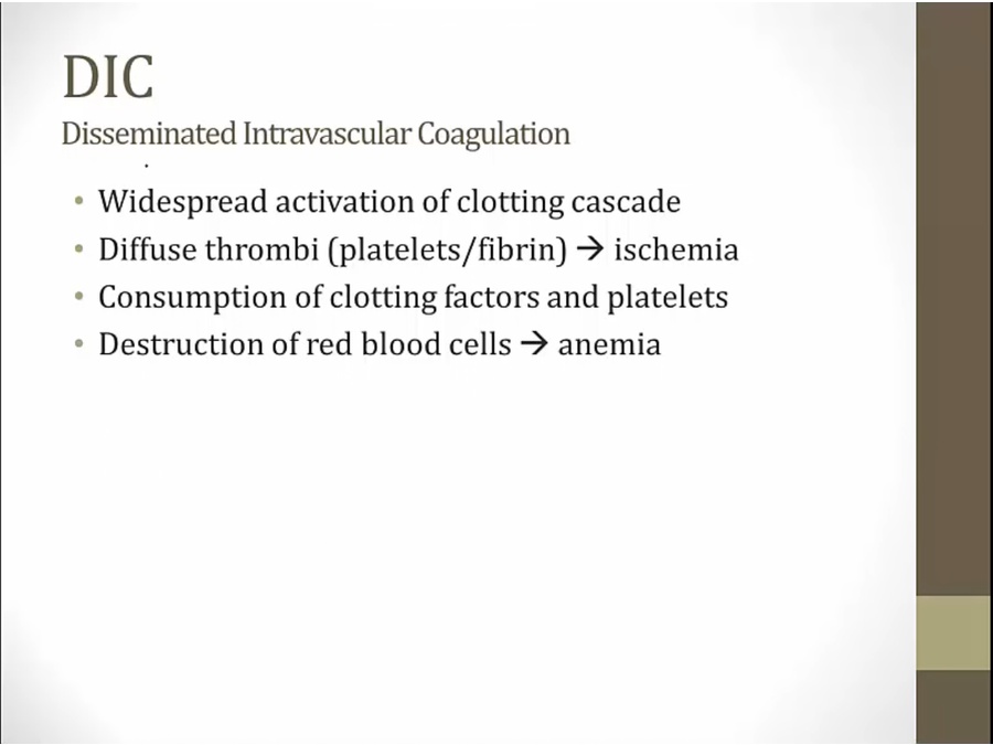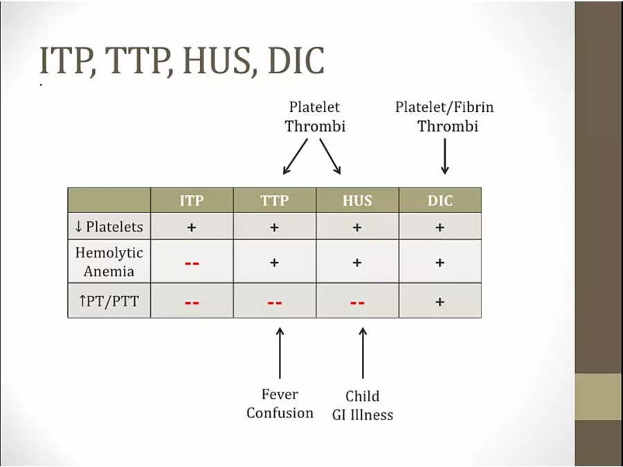 thrombus form in small vessels, consumes platelets, thrombocytopenia