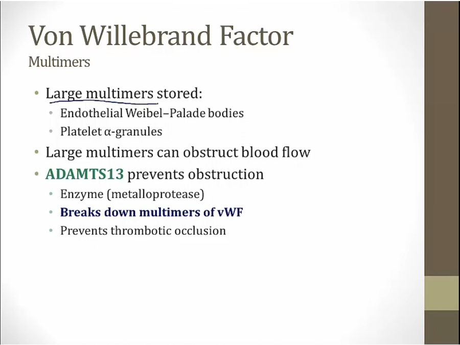 overactivity of ADAMST13, breaking down multimers, causing VWF to be less efficient