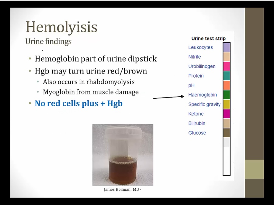 no RBC + Hgb: either hemolysis or rhabdomyolysis