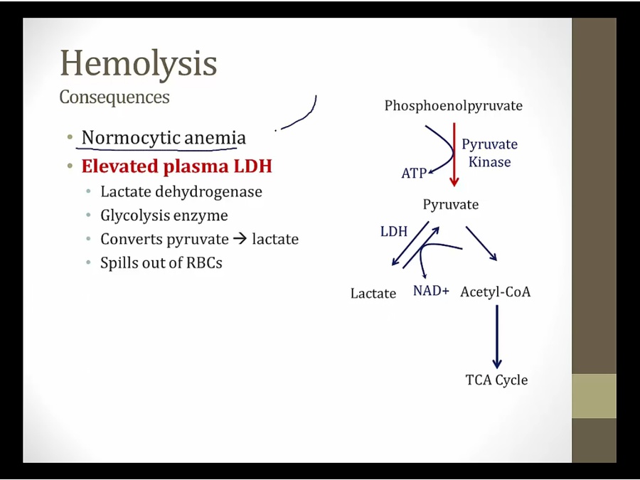 RBC: no mitochondria, no oxidative phosphorylation, no acetyl coa step, can only make lactate via LDH