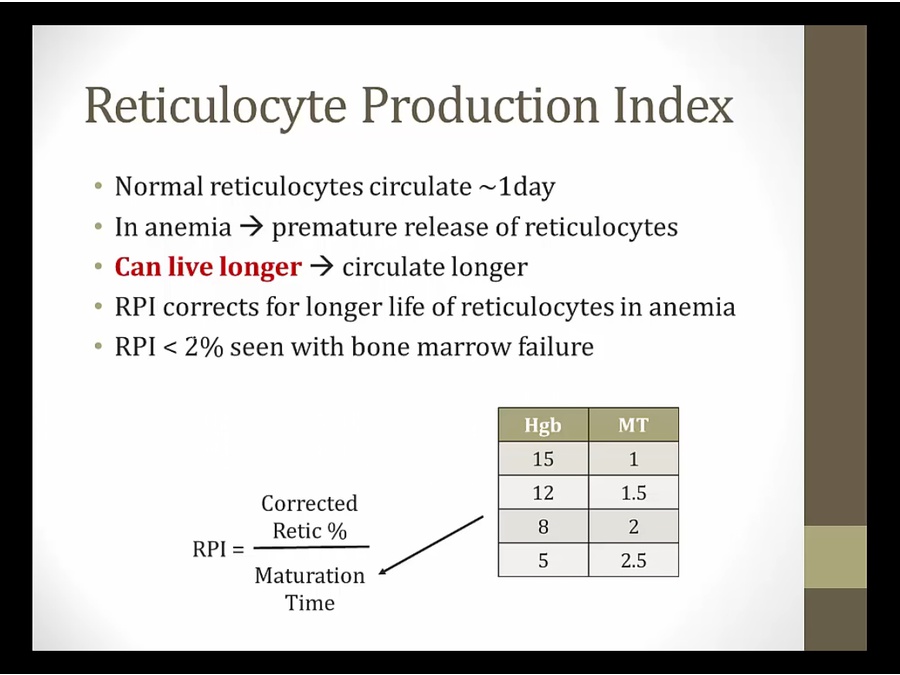low corrected reticulocyte count: not a problem with hemolysis but production