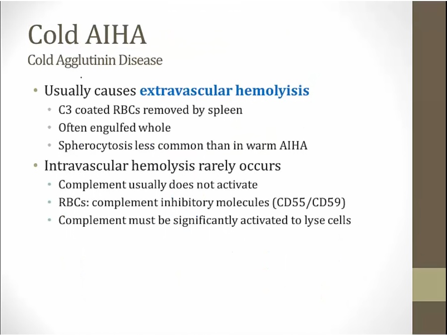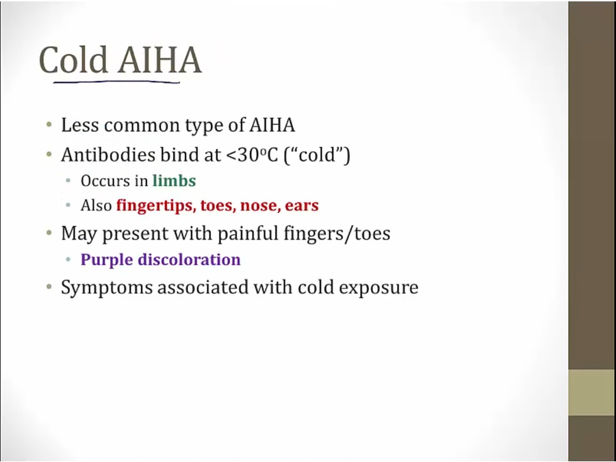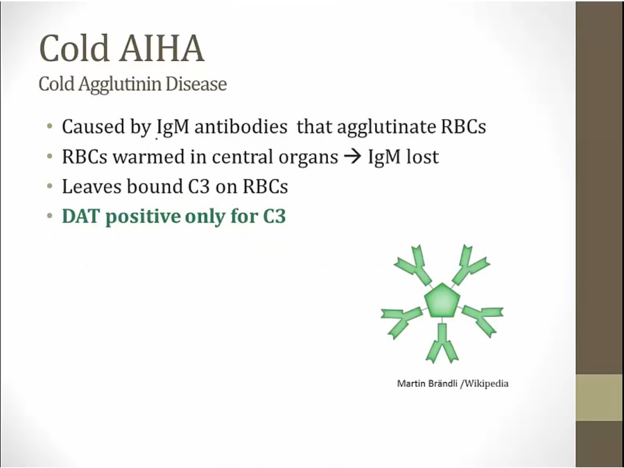 large antibodies, cause RBC to agglutinate, especially in extremities