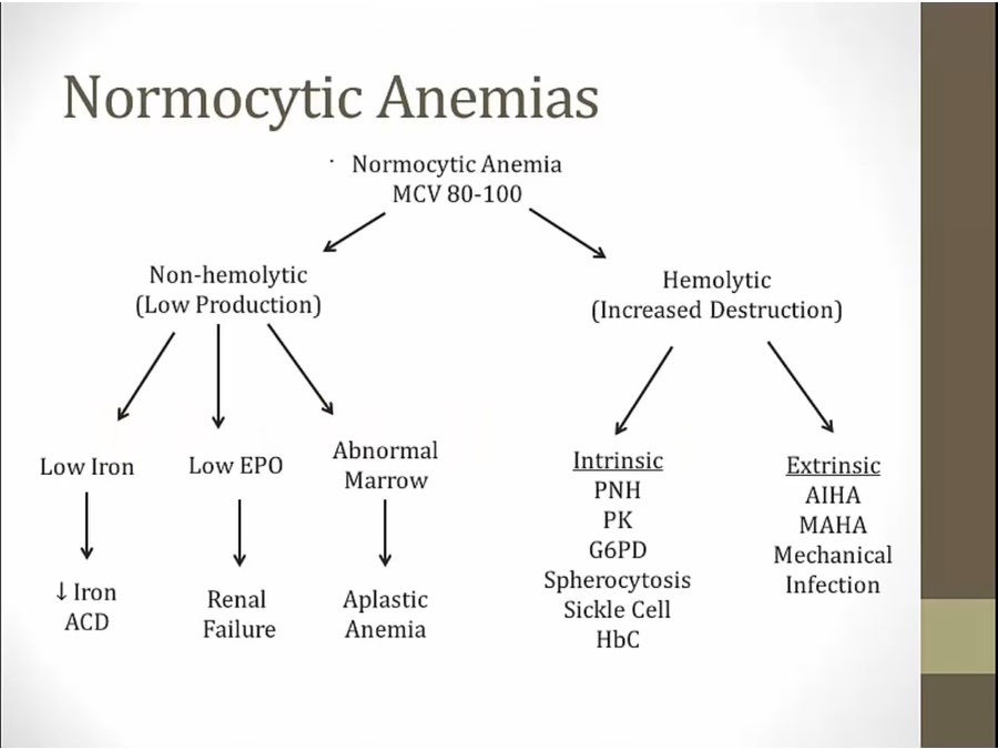 first see if normocytic anemia, then if RC is increased (increased production), then DAT