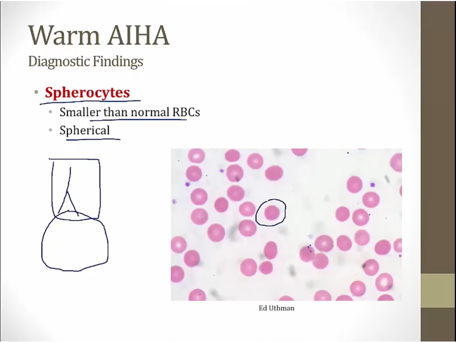 macrophage can't engulf whole RBC, just takes a bite off of it: shrink in size, more dense
