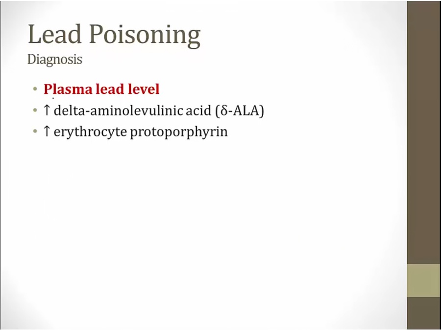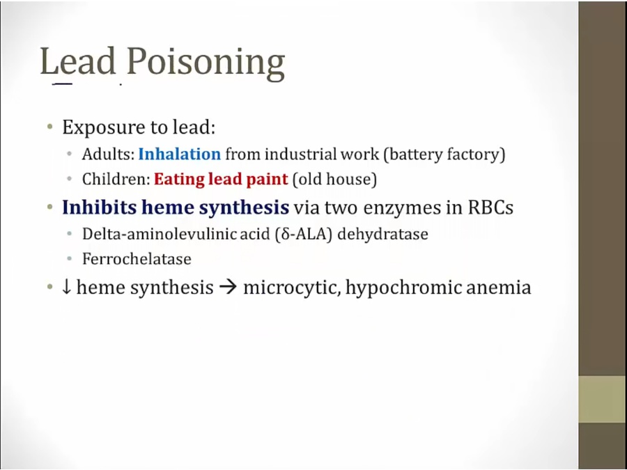 inhibition of D-ala dehydratase and ferrochelatase: low Heme