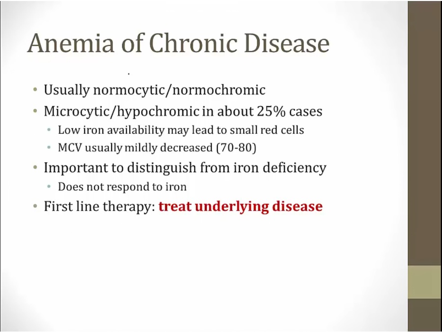 iron deficiency/anemia of chronic disease: both microcytic and normocytic