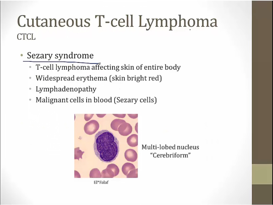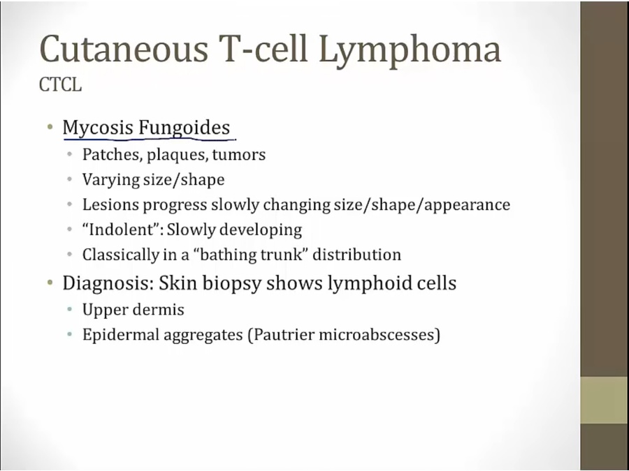 MM: no LAD, skin lesions, lymphocytosis, endemic location