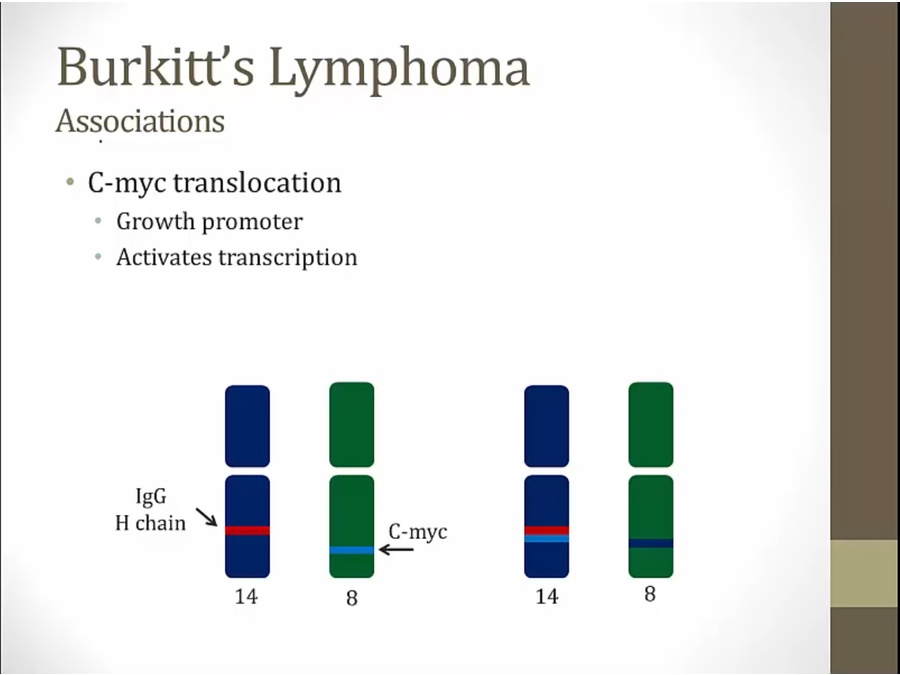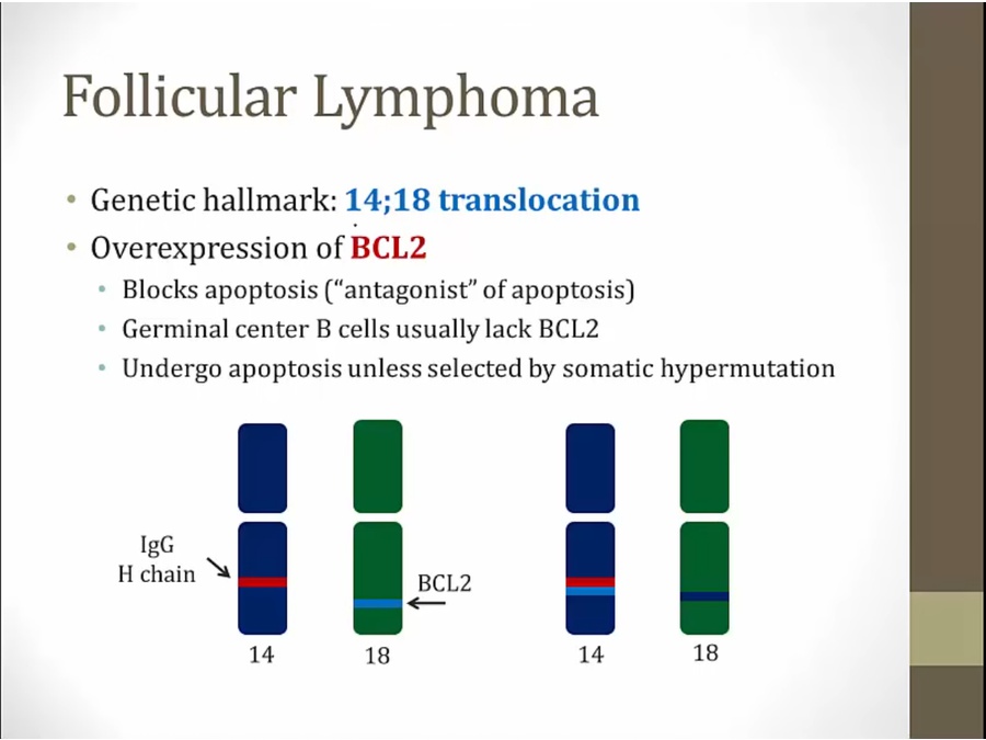 B cell make antibodies: heavily use IgG H chain, over express BCL 2 next to it