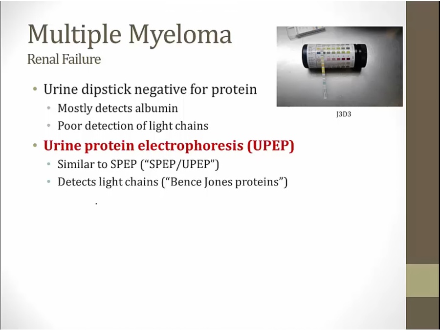 On light microscopy, numerous large, glassy casts that stain intensely eosinophilic are seen. Deposition of light chain fragments in the glomerular mesangium and capillary loops can also cause renal failure in MM (AL amyloidosis).