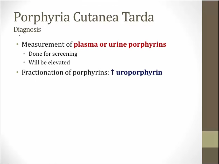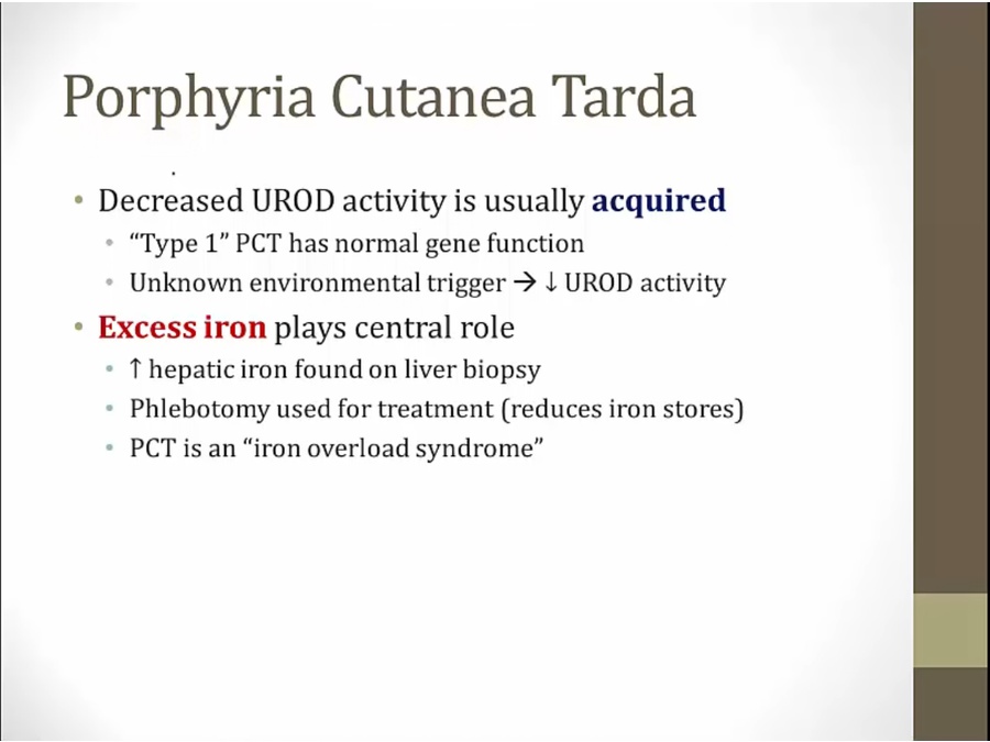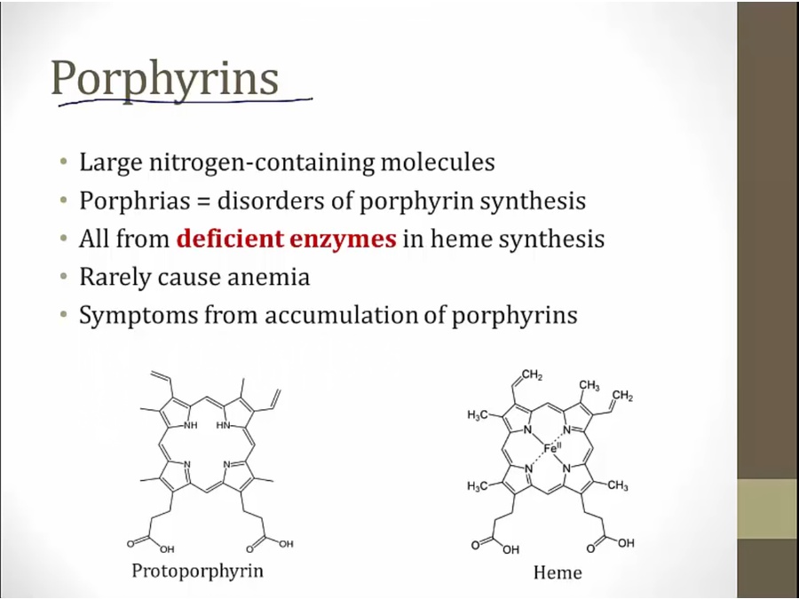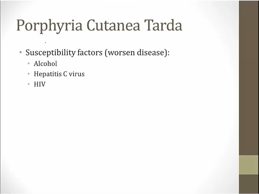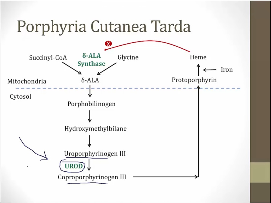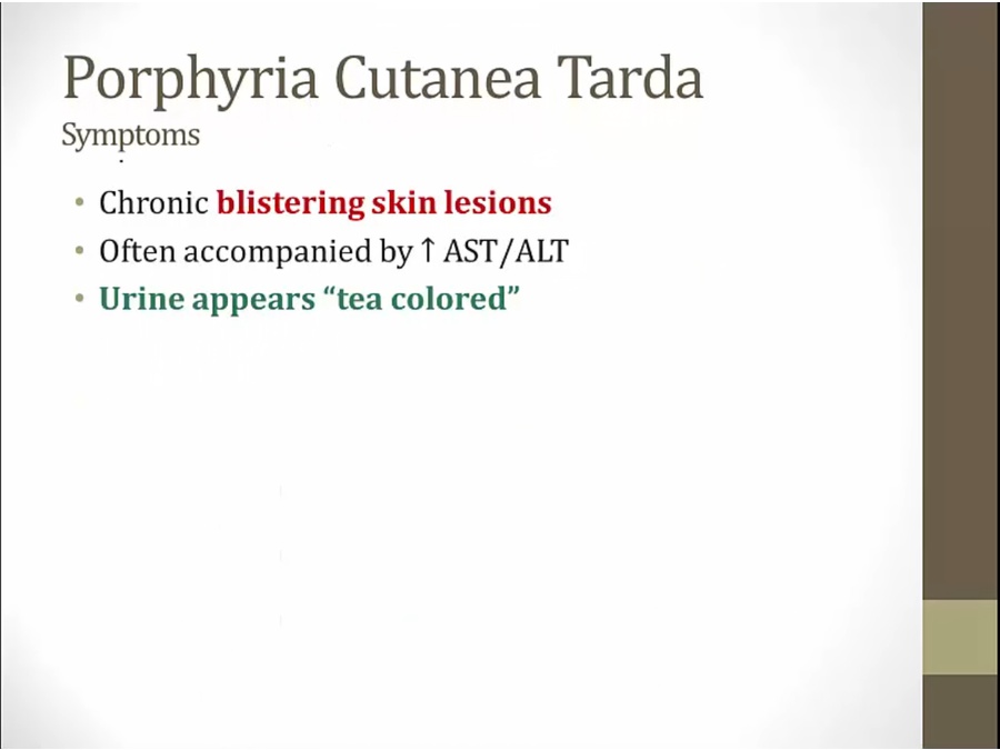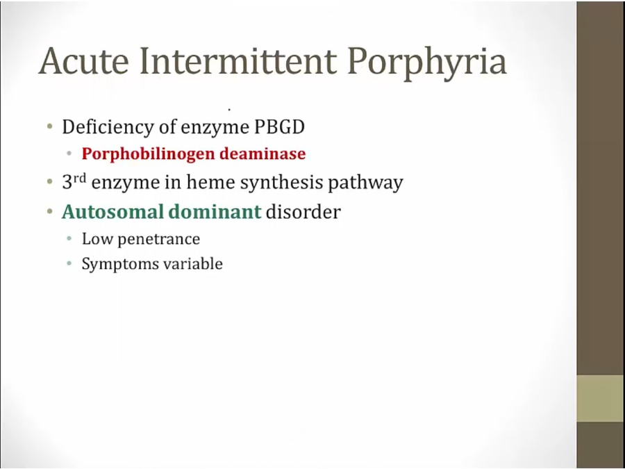 two common ones are hepatic porphyria: heme synthesis affected in liver