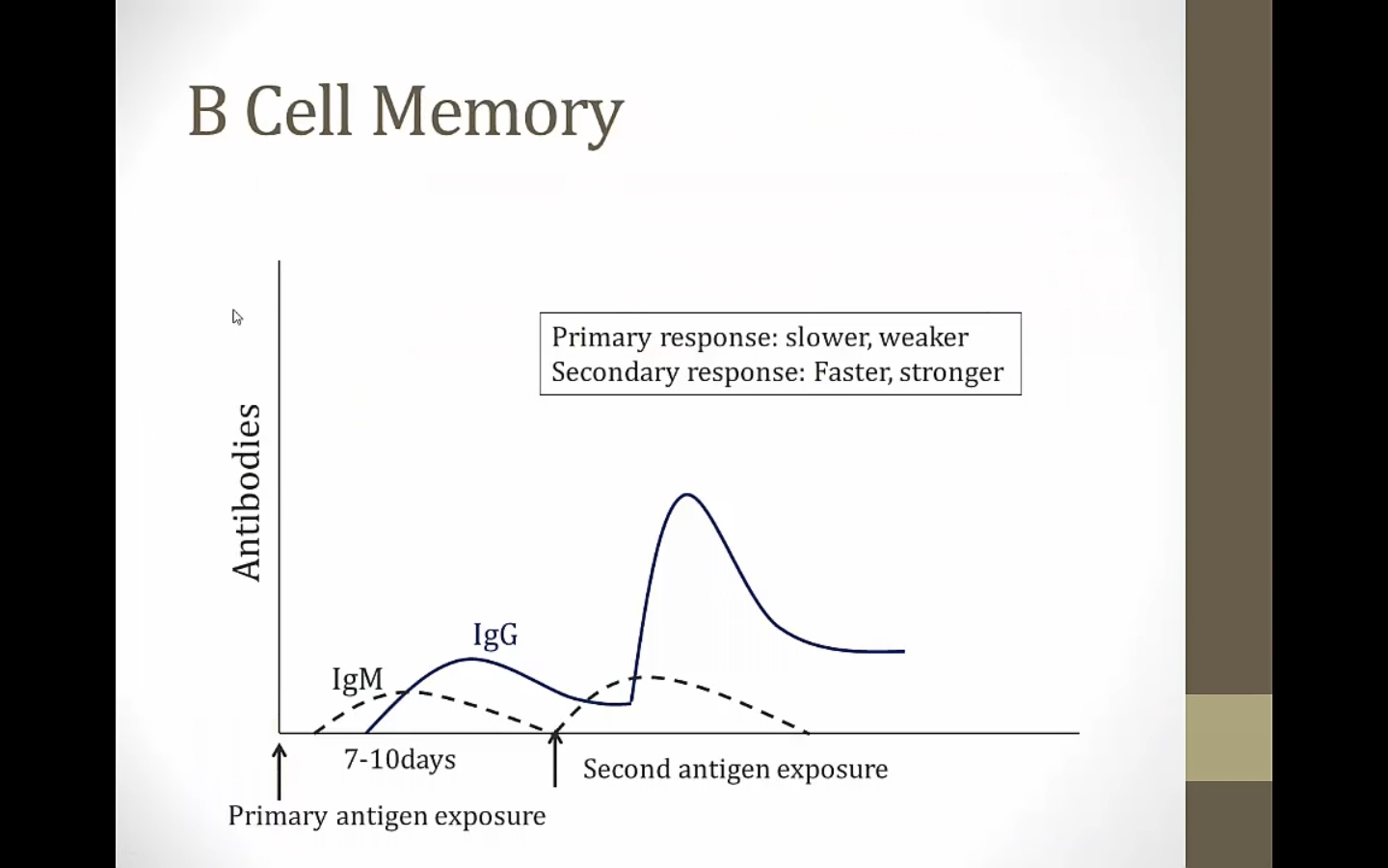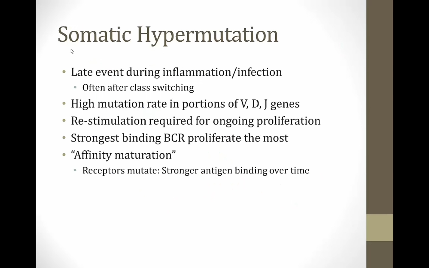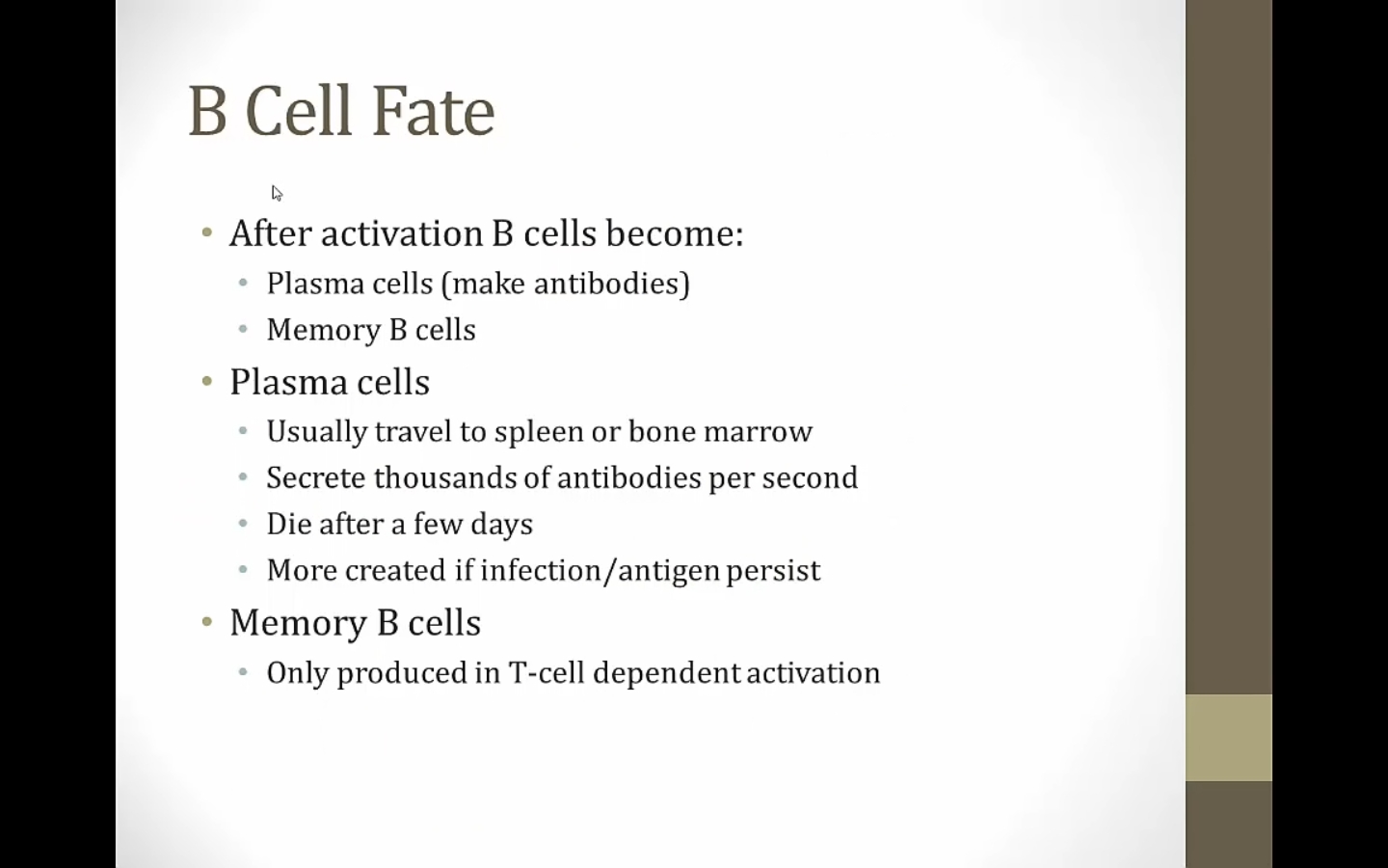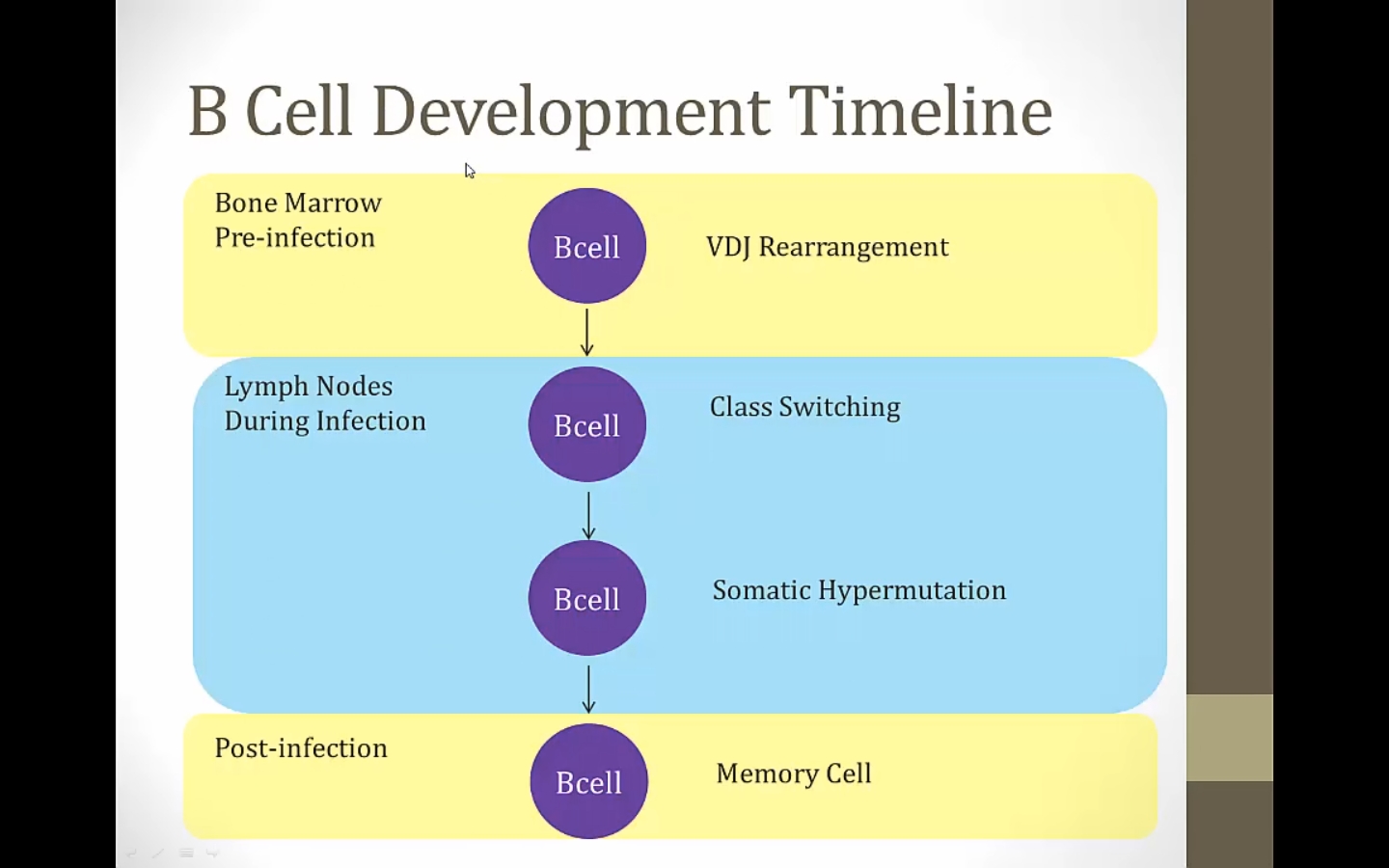 Cm and Cd spliced out; B starts to make Cy (IgG), Ca, Ce