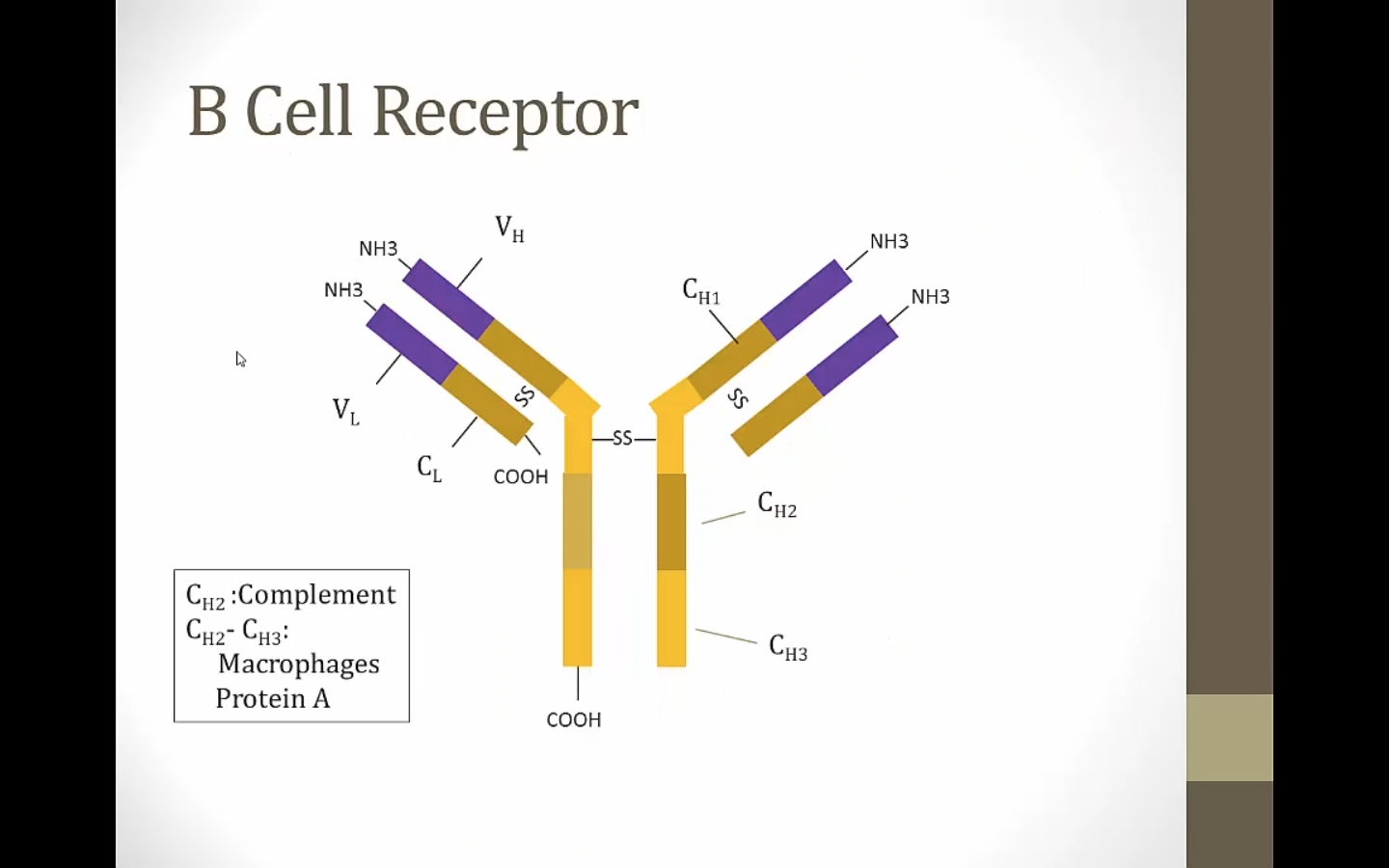 variable regions end in nitrogen groups; constant end in carboxyl group