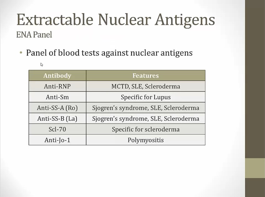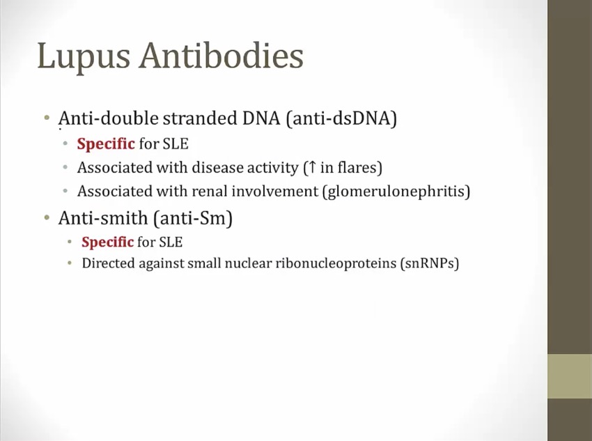 sjogren's: very common with SSA/Ro and SSB/La (can also have these antibodies in lupus)