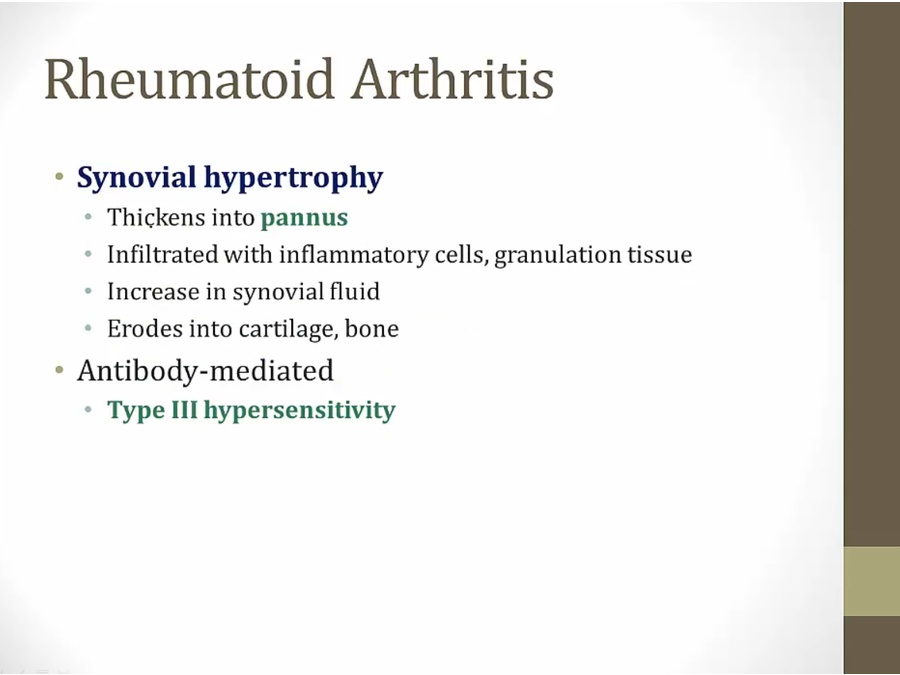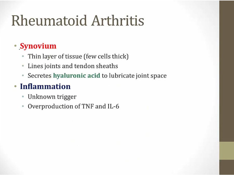 RA: inflammation of synovium