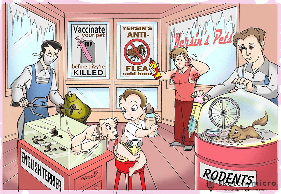 poop in cage: Y. enterocolitica transmitted through puppy feces