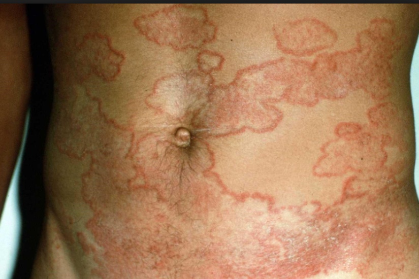 circular medallion: Progresses to lungs, causing granulomas in lungs