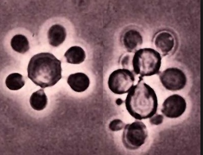 captain's wheel: Yeast form looks like a "Captain's Wheel". Yeast in body (heat)