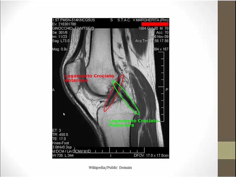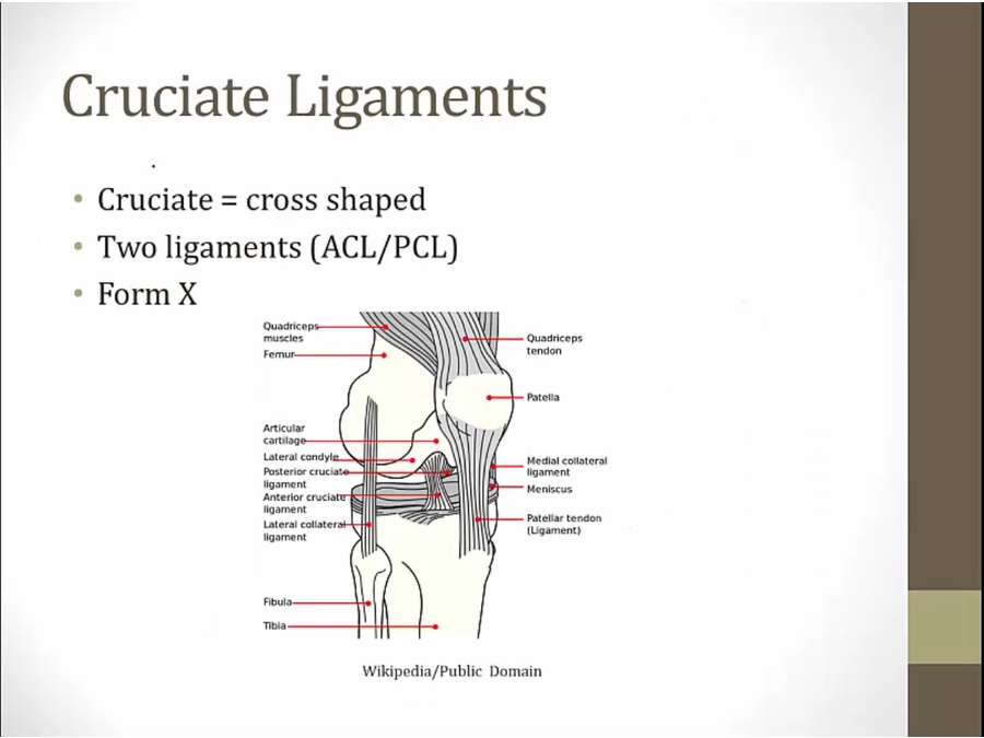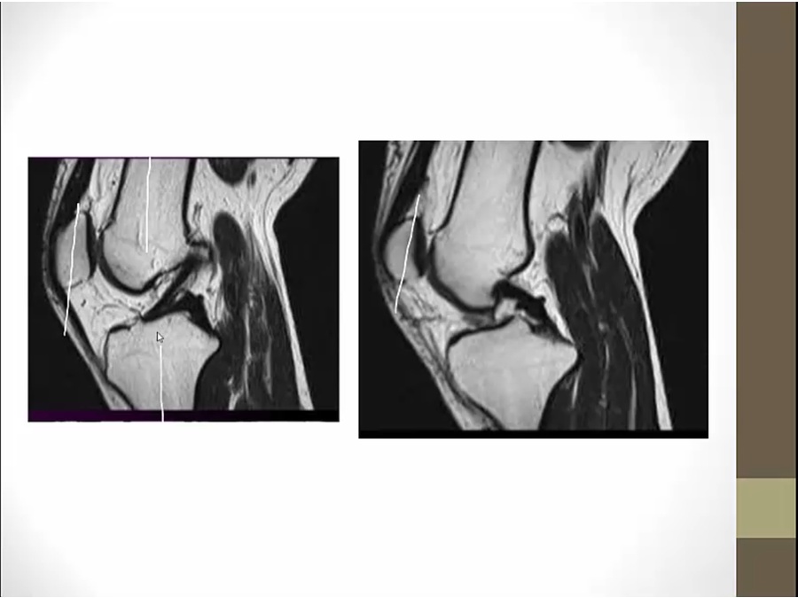 left pic: black line attaching to anterior tibia (anterior cruciating)