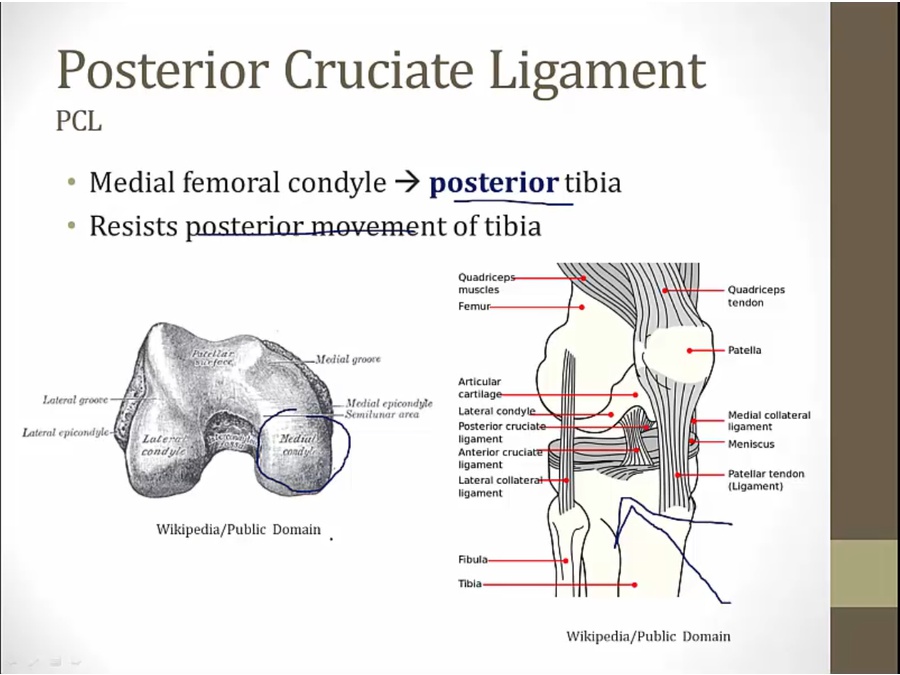 right pic: black line attach to posterior tibia (posterior cruciating)