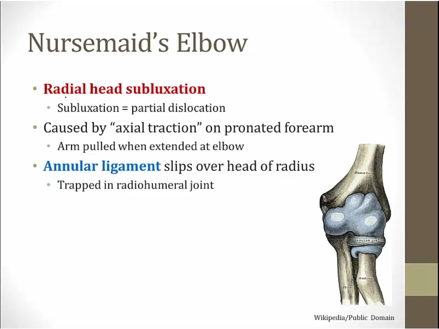 commonly happens to children when yanked by nursemaids