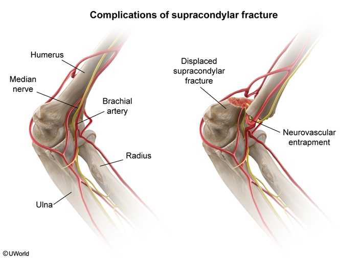 Treatment consists of analgesia and immobilization. Displaced fractures require orthopedic consultation. Neurovascular injury often resolves after orthopedic alignment and immobilization; patients who are treated promptly usually have a good prognosis.