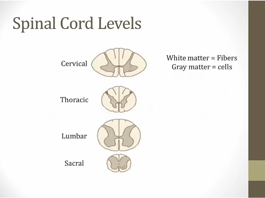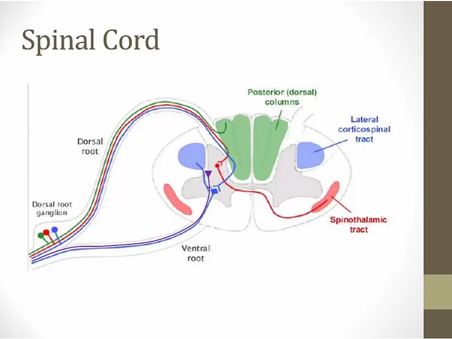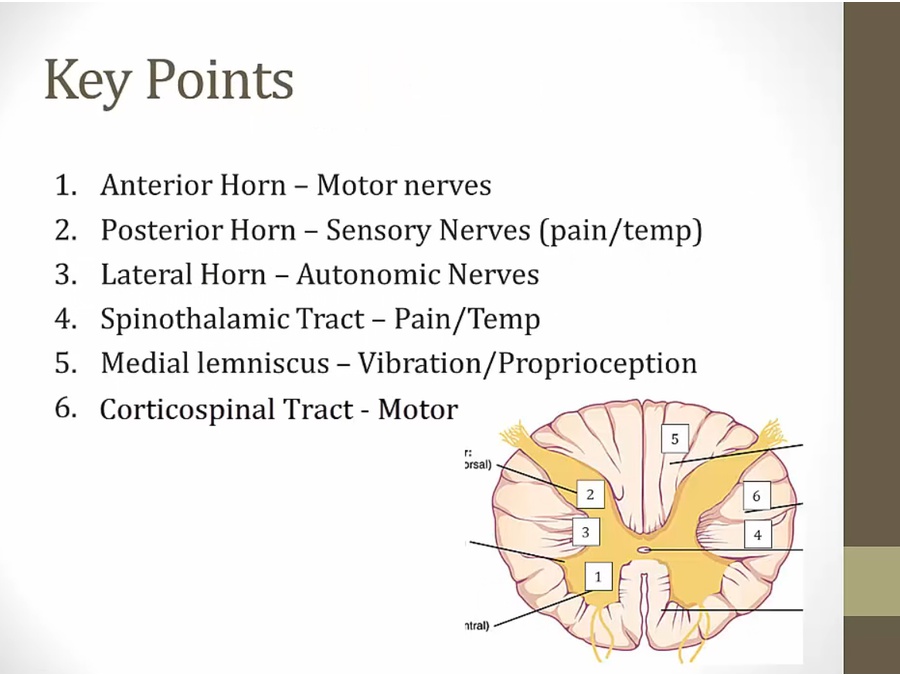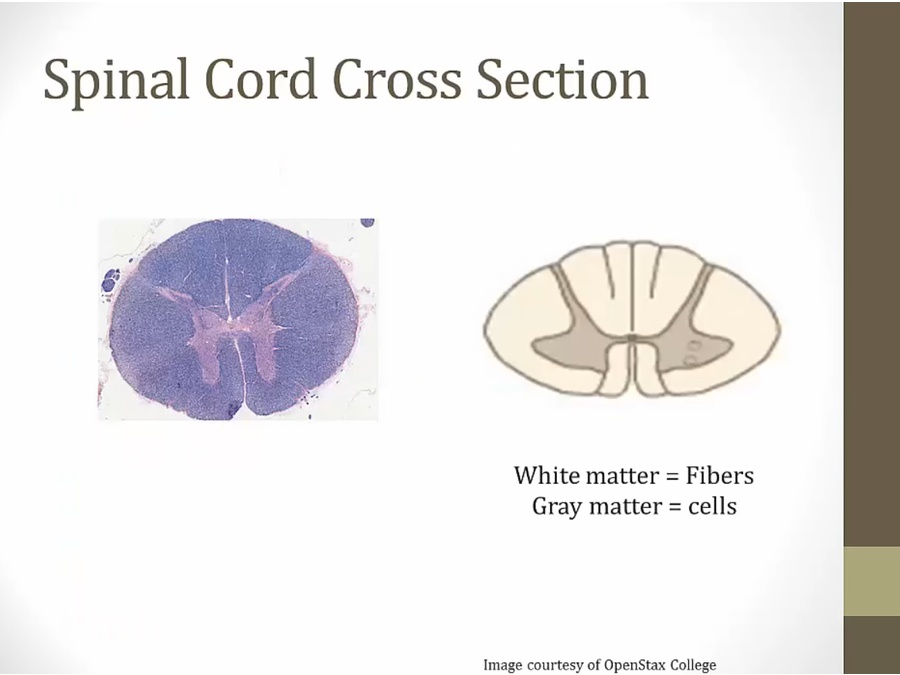 posterior horn, anterior horn, and lateral horn containing cell bodies