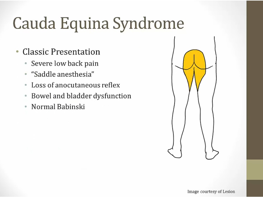 normal babinski because nerves in cauda equina are LMN, not UMN