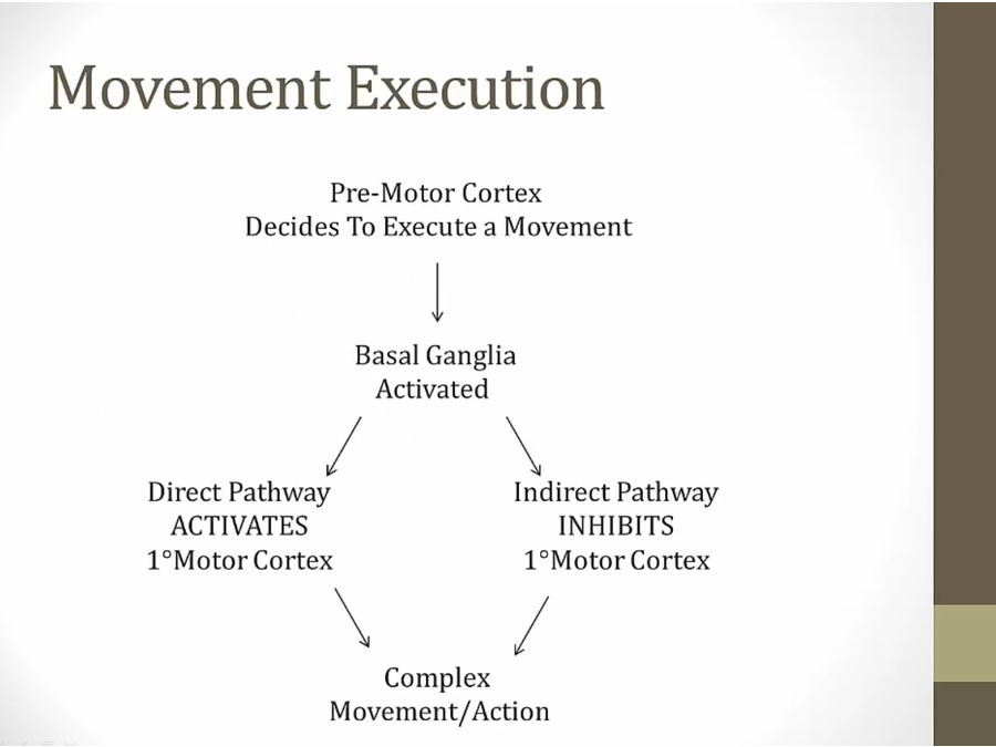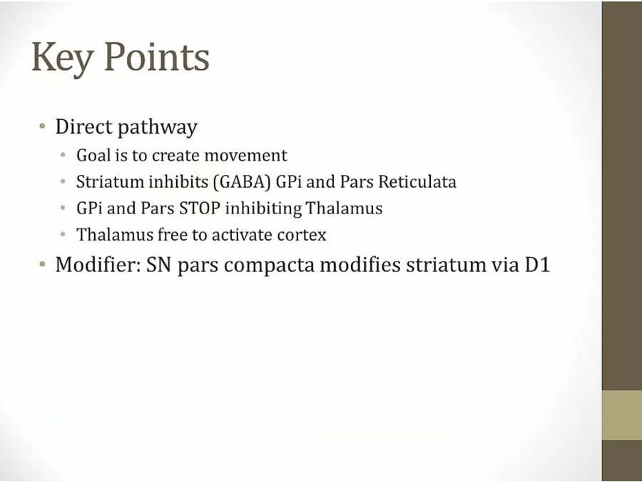 action: direct/indirect pathway modulate thalamus