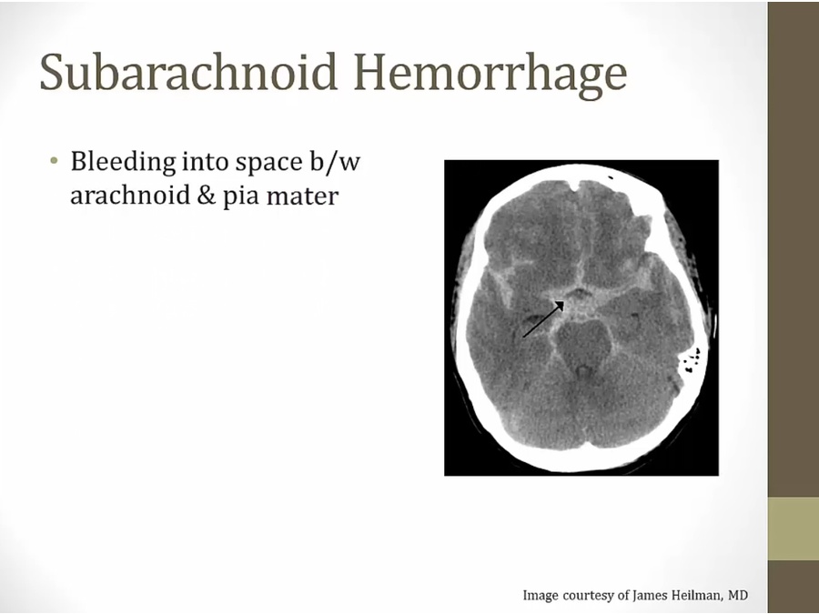 no focal deficits: bleeding not in lobes of brain (no weakness, sensory, motor problems)