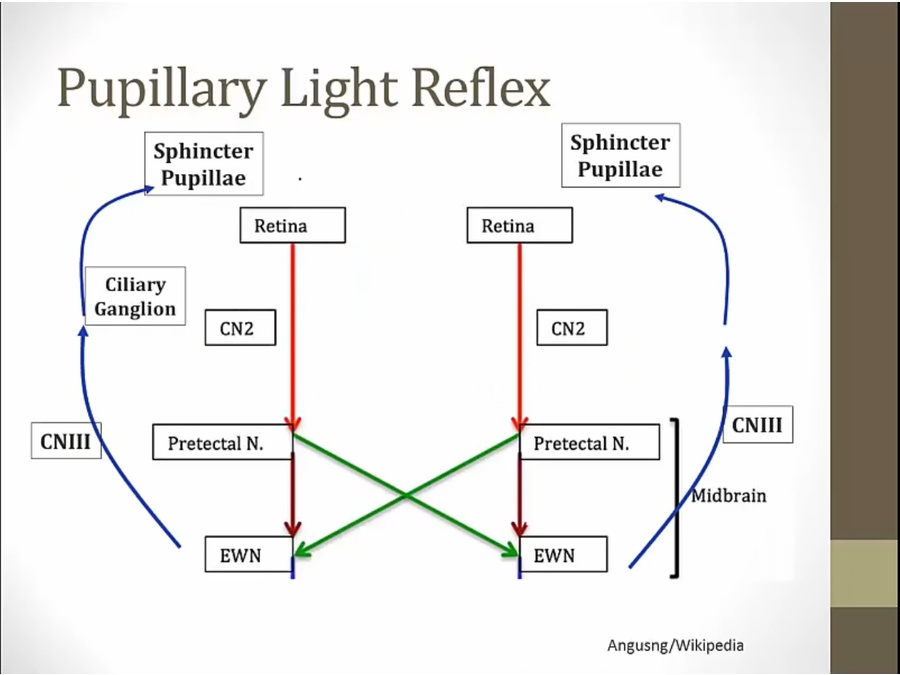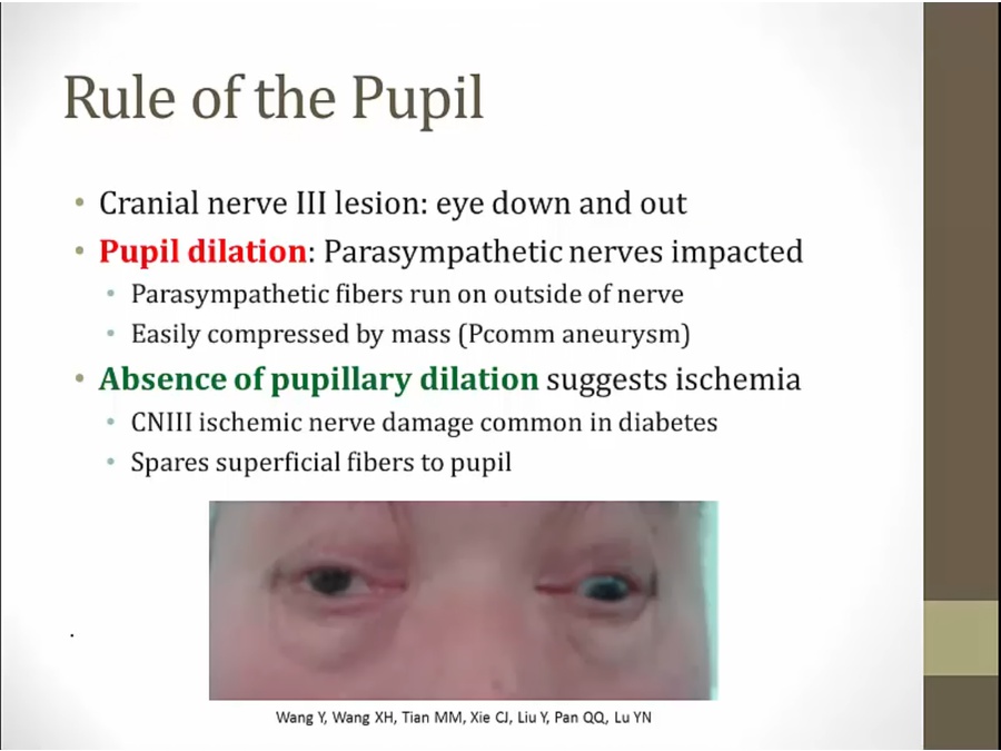 when eye down and out, evaluate pupillary dilation to see if parasympathetic intact