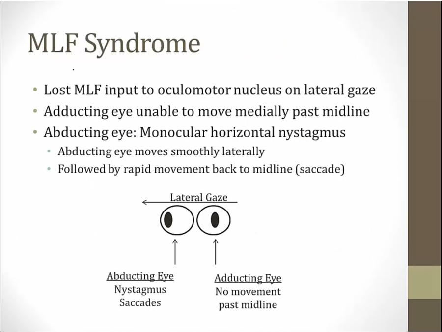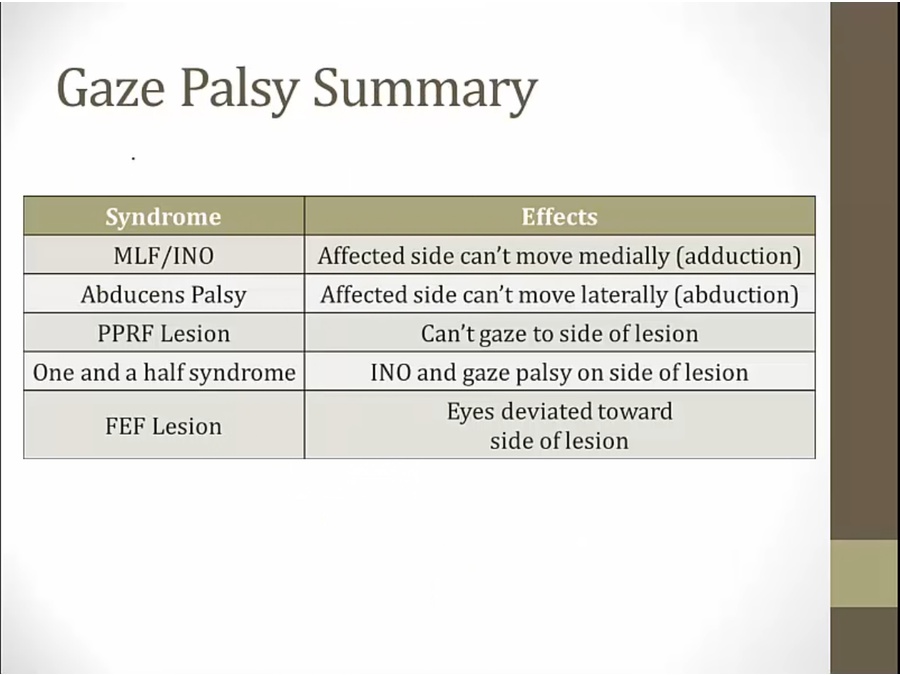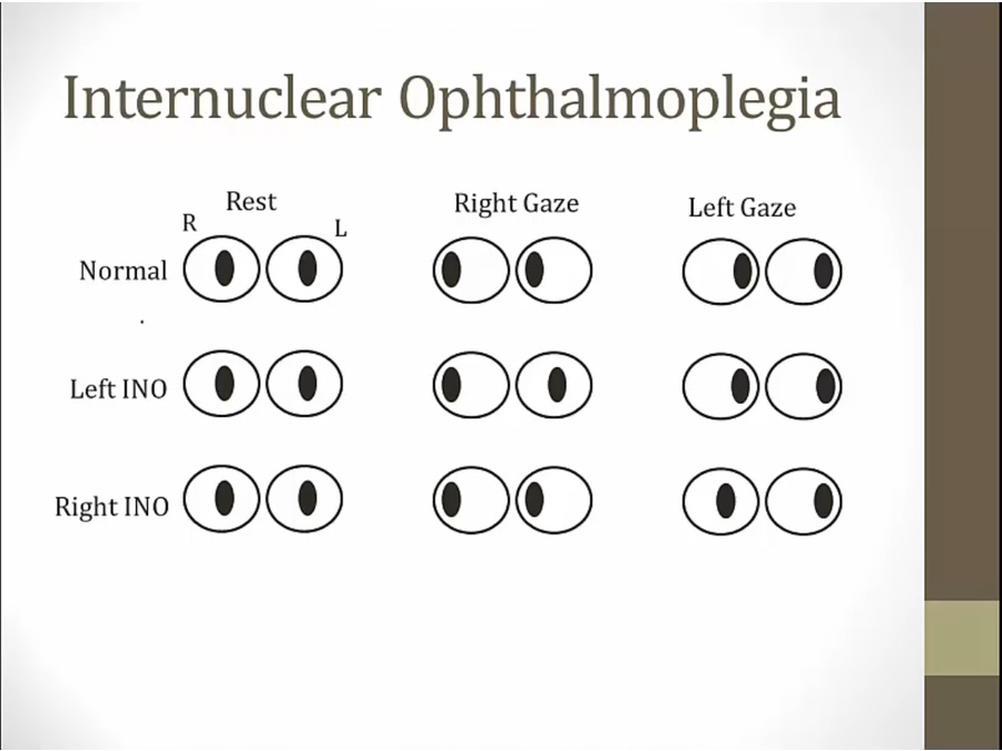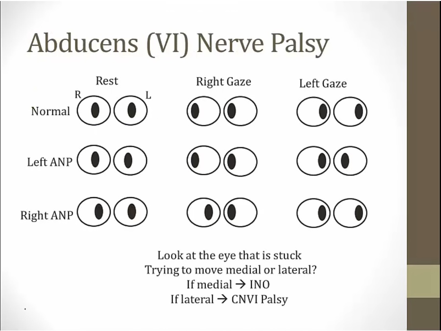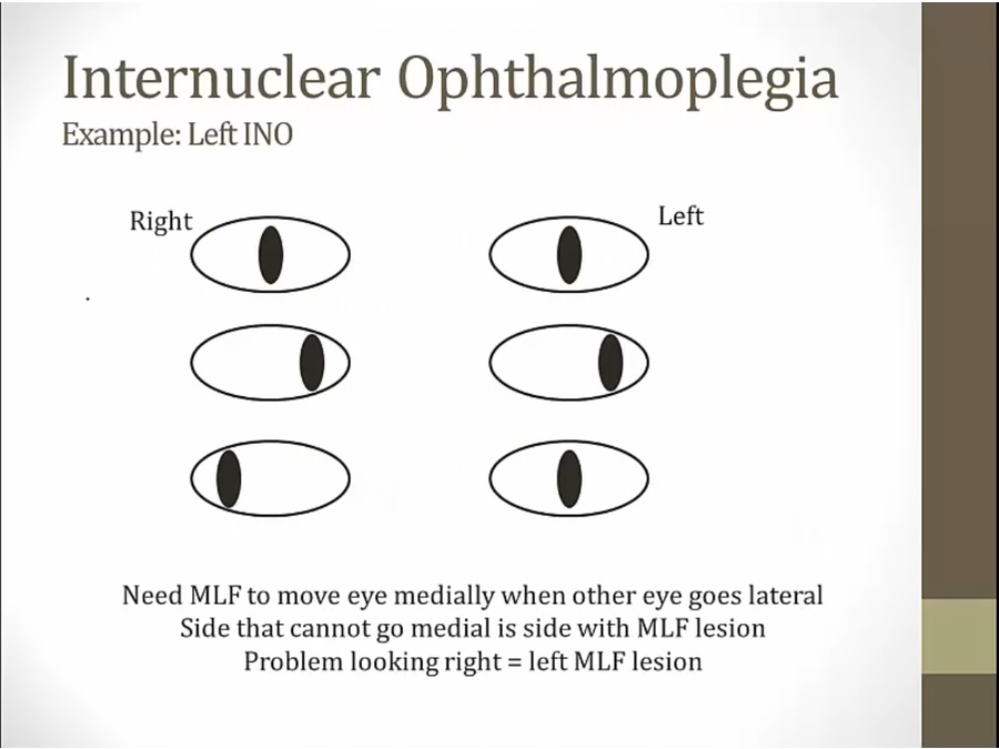 look to right: begin in PPRF signal to CN 6 nucleus, innervate LR