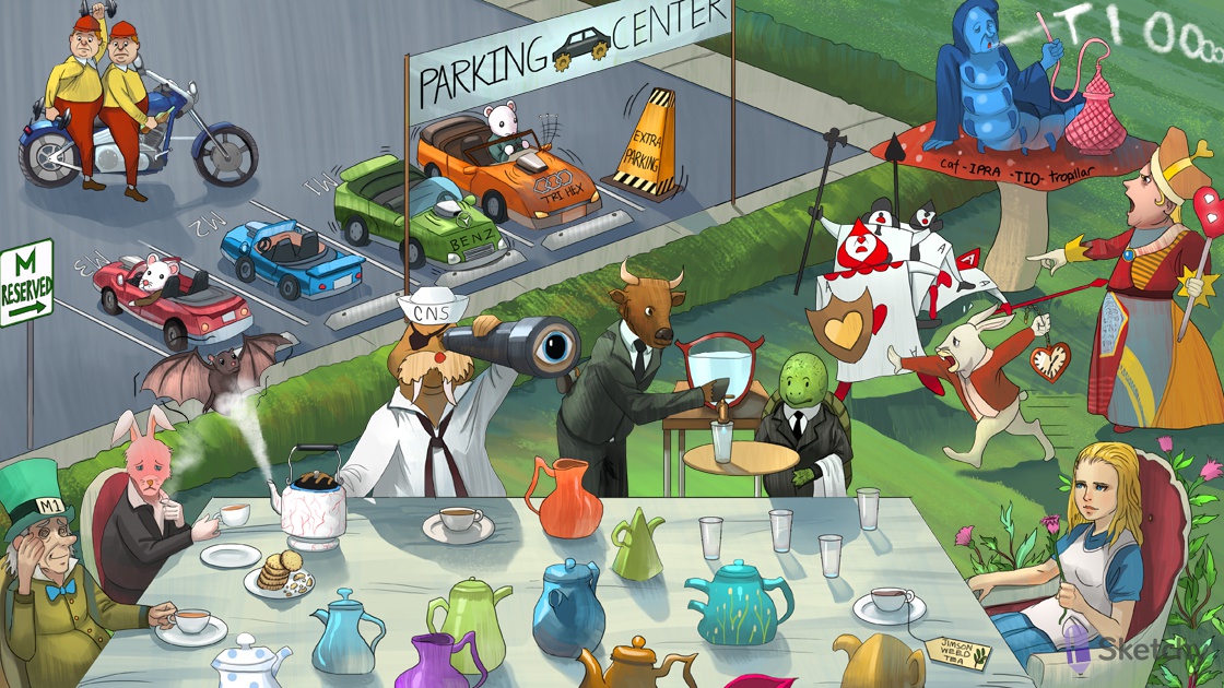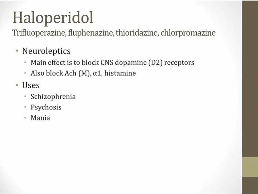 Falling "extra parking" cone: antimuscarinics treat extrapyramidal side effects caused by antipsychotics: e.g. dystonia, akathisia, parkinsonism (re-establish dopaminergic- cholinergic balance)