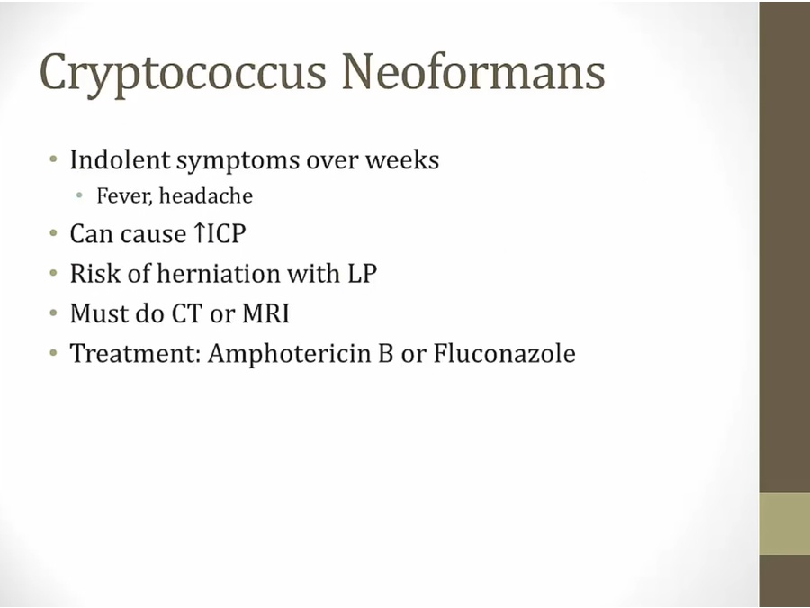Neck brace: Can cause cryptococcosis, a fungal meningitis. Most common cause of fungal meningitis