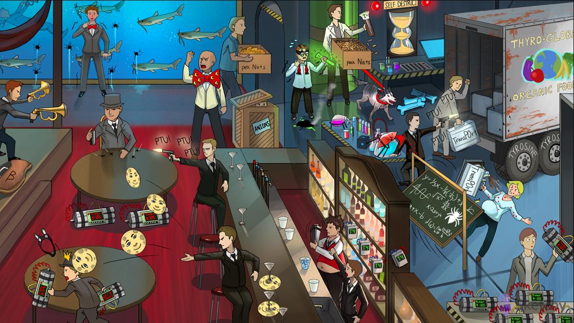 Activated scepter in inner circle: the activated glucocorticoid receptor enters the nucleus and regulates gene transcription