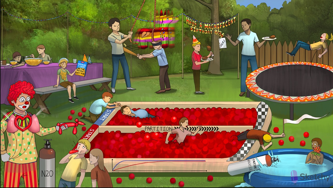 Moving freely in ball pit: highly soluble inhaled anesthetic (e.g. halothane) in blood