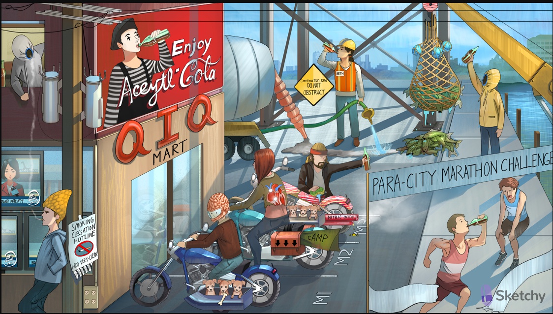 Mime drinking cola: cholinomimetics